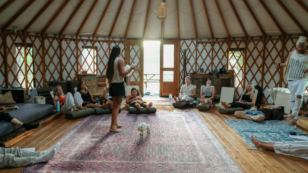 Enjoy time in nature between sessions: soak in mineral hot springs, hike 45 private acres, paddleboard, or simply rest. Lodging options provided from upscale cabins and glamping shelters to van or tent camping.